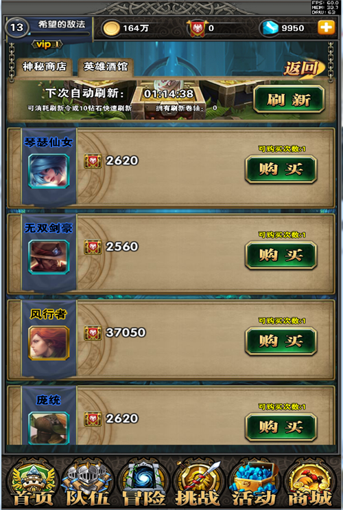 在挑战界面中有一个声望商店,进入后你会发现里面有各种英雄。对了!声望可以在这里面兑换英雄,根据英雄品质的不同,需要花费的声望也会不同。商店每隔小时会刷新一批英雄,您也可以使用刷新卷轴快速刷到自己想要的英雄!